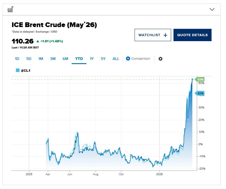 Σύμφωνα, τέλος, με δημοσίευμα της The Wall Street Journal, Σαουδάραβες αξιωματούχοι εκτιμούν ότι οι τιμές του πετρελαίου θα μπορούσαν να ξεπεράσουν τα 180 δολάρια το βαρέλι, εάν οι διαταραχές που συνδέονται με τον πόλεμο στο Ιράν διατηρηθούν έως τα τέλη Απριλίου.