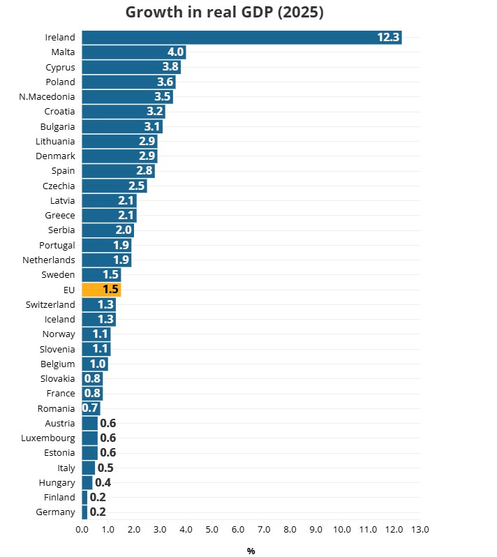 Αύξηση ΑΕΠ στην Ευρώπη το 2025: Οι χώρες που «ανέβηκαν» περισσότερο και η θέση της Κύπρου