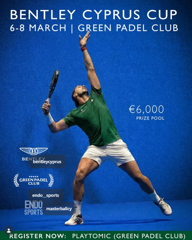 Η Bentley Cyprus ανακοινώνει μια αποκλειστική νέα συνεργασία με το Green Padel Club για τη διοργάνωση ενός ξεχωριστού τουρνουά Padel, που συνδυάζει τη δυναμική ενός αθλήματος υψηλών επιδόσεων με τη διαχρονική κομψότητα του τρόπου ζωής Bentley.
