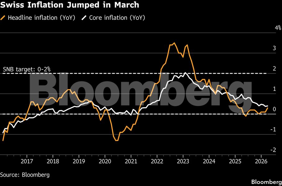 Σε υψηλό έτους εκτινάχθηκε ο πληθωρισμός της Ελβετίας σημείωνοντας άνοδο τον Μάρτιο καθώς η κρίση ενεργειακής προσφοράς που προκλήθηκε από τον πόλεμο στη Μέση Ανατολή ενίσχυσε το κόστος πετρελαίου θέρμανσης. Οι τιμές καταναλωτή αυξήθηκαν κατά 0,3% σε σχέση με την αντίστοιχη περίοδο του προηγούμενου έτους, σημειώνοντας άνοδο από το 0,1% που είχε καταγραφεί τους τρεις προηγούμενους μήνες. Το ποσοστό αυτό ήταν χαμηλότερο από τη μέση εκτίμηση του 0,5% σε έρευνα του Bloomberg. Οι περισσότεροι αναλυτές είχαν προβλέψει υψηλότερο αποτέλεσμα.