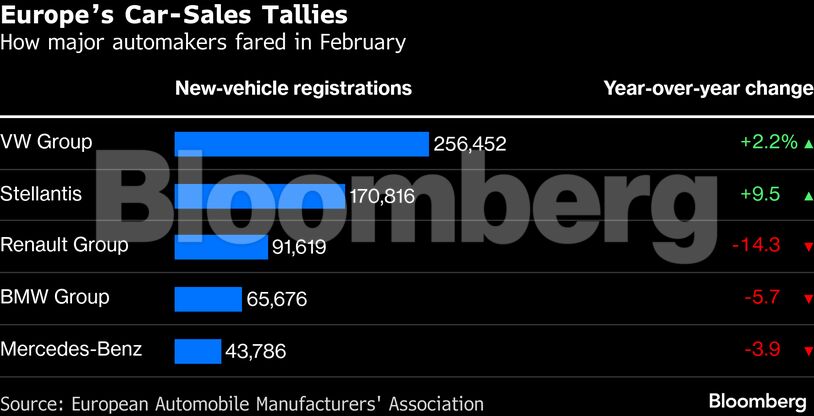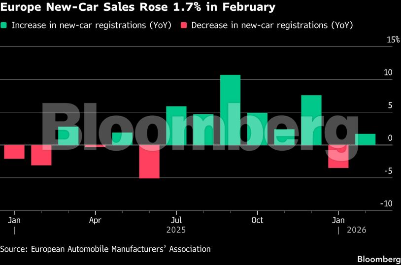 Σε σενάριο παρατεταμένης σύγκρουσης, η Bloomberg Intelligence εκτιμά ότι οι πωλήσεις αυτοκινήτων στην Ευρώπη το 2026 ενδέχεται να μειωθούν κατά 4%, έναντι προηγούμενης πρόβλεψης για αύξηση 2%.