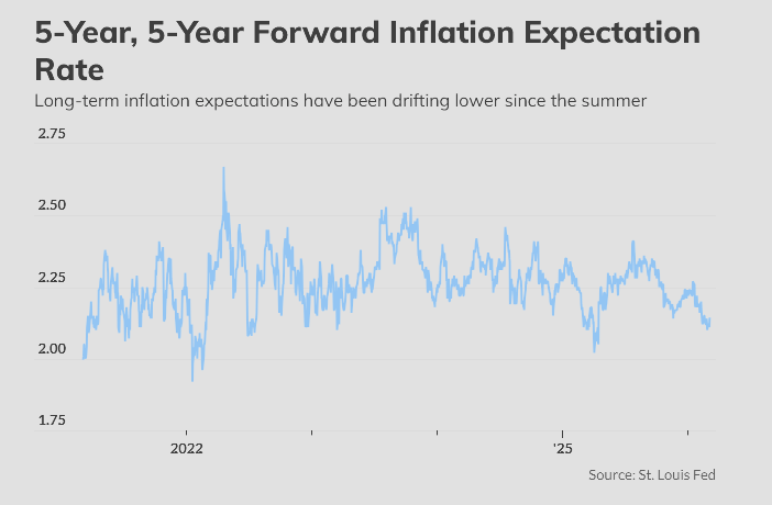 Μέχρι στιγμής, οι βασισμένοι στην αγορά δείκτες των μακροπρόθεσμων προσδοκιών των επενδυτών για τον πληθωρισμό δεν έχουν μεταβληθεί ιδιαίτερα. Αυτό σημαίνει ότι η αγορά εξακολουθεί να αναμένει ότι οποιαδήποτε επίδραση στον πληθωρισμό θα είναι σχετικά βραχύβια.