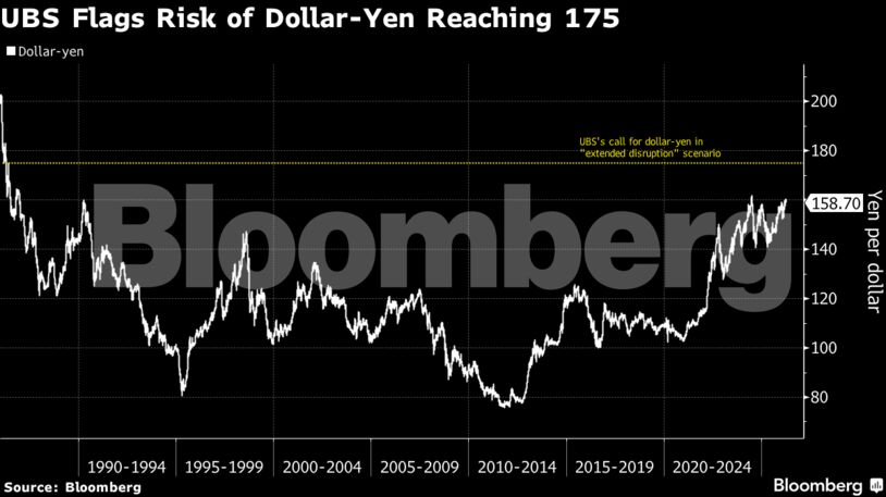 Η περαιτέρω αποδυνάμωση του ιαπωνικού γιεν εκτιμάται ότι θα συνεχιστεί, παρά την εντεινόμενη ρητορική παρέμβασης από τις ιαπωνικές αρχές, σύμφωνα με αναλυτές της UBS Group AG, οι οποίοι προβλέπουν ότι η ισοτιμία δολαρίου-γιεν ενδέχεται να φτάσει τα 175 έως το τέλος του έτους, σε σενάριο παρατεταμένων διαταραχών στην αγορά ενέργειας.